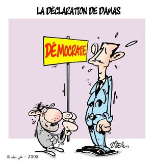 الكاريكاتور الذي استخدمه إعلان دمشق من منظمة مراسلون بلا حدود.[4]