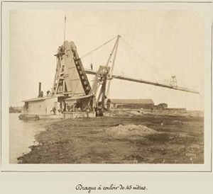 وفى 25 أبريل 1859 أقيم حفل صغير ببورسعيد للبدء فى الحفر، فكانت ضربة المعول الأولى لديليسبس، وكان معه مائة عامل حضروا من دمياط، وتوقف الحفر بسبب اعتراضات الباب العالى وإنجلترا، إلى أن بدأ مرة أخرى فى ٣٠ نوفمبر إثر وساطة قامت بها الإمبراطورة أوجينى لدى الباب العالى وإنجلترا، فعاود العمال الحفر وكان عددهم قد بلغ 330 عاملاً، و٨٠ عاملاً أجنبياً، ثم تم الاستعانة بالعمال المصريين فقط، فبلغ عددهم 1700 عامل.