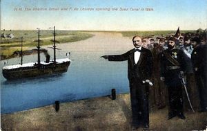 وفى عام 1861 بدأت الشركة إنشاء ميناء بورسعيد، وأقامت منارة وكوبرى، وقام الخديو بزيارة الميناء الذى حمل اسمه فى 12 أبريل 1861، وفى أواخر ذلك العام قام الخديو بزيارة مناطق الحفر بجوار بحيرة التمساح، واختار موقع المدينة التى اختير لها اسم «الإسماعيلية»، وزاد عدد العمال إلى 25 ألف عامل، وفى 12 نوفمبر أقام ديليسبس احتفالاً بمناسبة الانتهاء من حفر القناة البحرية المصغرة،