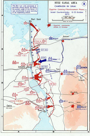 بالإضافة إلى عبور القناة، تمكنت القوات المصرية من إقامة حصار بحري ناجح ضد إسرائيل في البحر الأحمر (اغلاق باب المندب) والبحر الأبيض المتوسط.