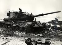 Wreckage of Israeli armor in the aftermath of one of the counterattacks.