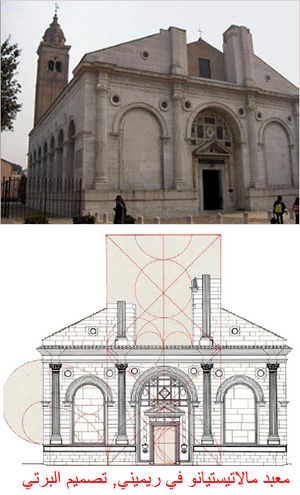 البرتي لا يتحدث أبدا عن نوع النسب المستخدمة ، كما لو أنة يريد ان يبقي هذا الأسلوب سرياً, والذي بواسطته حصل على ذلك التوازن المتناغم. التحقيقات الدقيقة أثبتت أن النسبة الذهبية تهيمن على العلاقة بين جميع الأجزاء في العديد من أعمالة المعمارية.