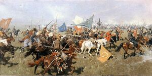 In 1675, Sultan Mehmed IV demanded the Zaporozhian Cossacks led by Ivan Sirko to submit to the Ottoman rule. To which, Cossacks responded with a semi-legendary letter full of profanities and insults.[1] This inspired most popular painting in Ukrainian-Russian history, Ilya Repin's Reply of the Zaporozhian Cossacks.[14]