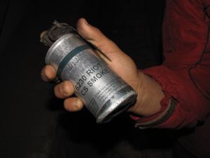 - وضع السي إس في قنابل حرارية تطلق غازات ساخنة[1].