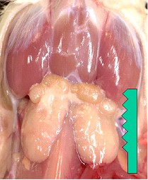 - في الأمام الغدة تحت اللسانية النظيرة(حيث تتجاوز نهايتا الغدتين الأماميتان الخط الناصف).