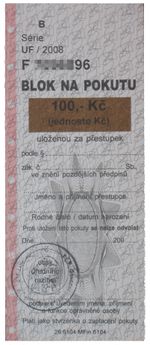 إيصال لدفع غرامة لمخالفة قانون المرور في جمهورية التشيك.