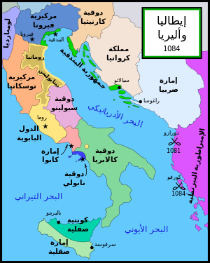امتد الغزو النورماني لجنوب إيطاليا على نهاية القرن الحادي عشر وأغلب القرن الثاني عشر، منطويًا على العديد من المعارك وضم العديد من اللاعبين المستقلين الساعين للسيطرة على الأرض. جرى لاحقًا توحيدها تحت جناح مملكة صقلية والتي لم تشمل فقط جزيرة صقلية ولكن أيضًا كامل الثلث الجنوبي من شبه الجزيرة الإيطالية (عدا بنڤنتو التي ضموها مرتين لفترة وجيزة) فضلًا عن أرخبيل مالطا وأجزاء من شمال أفريقيا.