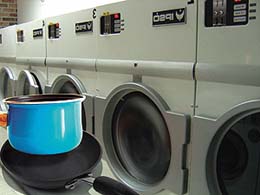 ونظرا لارتفاع السعر فقد تفتق ذهن مواطن أمريكي اسمه أندرو كلاين إلى تشغيل عدة غسالات كهربائية كبيرة الحجم وضعها في محل استأجره في إحدى مدن تكساس ودعا الزبائن إلى غسل ثيابهم في المحل لقاء أجر معقول ومعلوم. كان ذلك في عام 1934 وكانت تلك أول غسالة عمومية أو تجارية أو أول محل للتنظيف. ولم يطل الأمر إلا وقد تم التوصل إلى الغسالة الأوتوماتيكية في عام 1937. وتتراوح بداهة أحجام هذه الأجهزة بكل أهميتها الجوهرية للحياة الحديثة: ما بين غسالة المنزل التي تستخدمها ربة البيت أو معاونوها إلى الغسالات العمومية التي عمدت بعض المدن في أميركا أو كندا إلى تركيبها في ساحات الميادين ومحطات المواصلات الرئيسية حيث يستخدمها عموم الجمهور لقاء مبالغ زهيدة تدفع بالعملات المعدنية التي يتعرف عليها جهاز الماكينة وعلى أساسها يبدأ التشغيل..