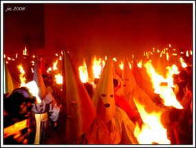 In Goiás, one of the most popular festivals is the Procession of the Fogaréu, which occurs on the Wednesday before Easter Sunday. It is one of the most traditional events of Holy Week in Brazil and only in Angra dos Reis is a similar procession celebrated. During the ceremony the farricocos (the people dressed in medieval robes and hoods that accompany processions of penitence) simulate Jesus' arrest by the Roman soldiers by running through the streets of the town at midnight with torches to the sound of drums. There is a great resemblance with some traditions that take place in Spain at the same time of year especially in Toledo and Sevilla. The darkness, the torches, and the speed of the men with covered faces create a medieval atmosphere. It was believed that the devil was loose in the streets of the town on that night, frightening all, especially the children. Originally, only men could participate but today that has changed. Superstitions like the presence of a werewolf and a headless mule are also manifested in this popular festival. Tourists come from far and wide to witness the spectacle. In 2006, according to the Diario da Manhã a newspaper from Goiânia, 10,000 tourists came to watch the procession.