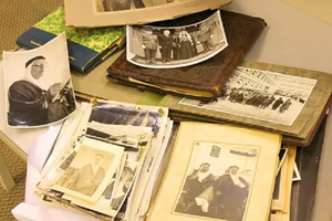 بعض صور فؤاد حمزة في السعودية ومخطوطاته، ومنها مذكراته التي قدمها ابنه لدارة الملك عبد العزيز.