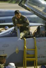 ڤاجيرالونگ‌كورن يخرج من قمرة قيادة الطائرة إف-5 إي تايگر 2.