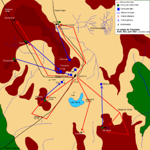 خريطة توضح المرحلة الأول من حصار تريپولتسا أثناء حرب استقلال اليونان.