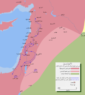 23. ^ le Strange, Guy. Palestine Under the Moslems: A Description of Syria and the Holy Land from A.D. 650 to 1500. Alexander P. Watt for the Committee of the Palestine Exploration Fund. p. 25. {{cite book}}: Cite has empty unknown parameters: |lay-date=, |subscription=, |nopp=, |last-author-amp=, |name-list-format=, |lay-source=, |registration=, and |lay-summary= (help)