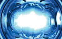 اندماج نووي باستخدام مغانط يسعى المفاعل ITER في جنوب فرنسا إلى تحقيق الاندماج بواسطة تسخين الپلازما المكونة من الديتيريوم والتريتيوم. ويتم احتواء الپلازما بواسطة مغانط فائقة الموصلية وذات قدرة عالية جدا، وتستخدم أشعةً ميكروية لتسخين الپلازما إلى 150 مليون درجة مئوية. وهذه العملية ليست متقطعة مثل الاندماج الليزري في المنشأة NIF، حيث يمكن للاندماج أن يستمر عشرات الثواني أو حتى مئاتها. — |
