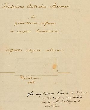 suggested) (help)CS1 maint: unrecognized language (link) - Shultheisz E (1965). "MESMER AND MESMERISM". Orvosi Hetilap (in Hungarian). 106: 1427–30. ISSN 0030-6002. PMID 14347842.