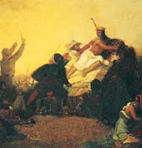 بيزارو فرانسيسكو هزم إمبراطورية الإنكا في غرب أمريكا الجنوبية. توضح هذه الصورة إمساكه بحاكم الإنكا أتاهوالبا في معركة كاجا ماركا المشهورة في عام 1532م.