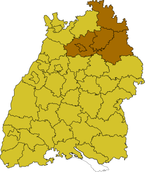 The Franconian territories of Baden-Württemberg are the regions of Tauber Franconia and Hohenlohe (which belong to the Heilbronn-Franconia Region with its office in Heilbronn and form part of the Stuttgart Region) and the area around the Badenian Buchen in the Rhein-Neckar Region.