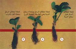تزرع الفراولة بدءاً من أوائل الربيع حتى نهاية الخريف بعد تعقيم التربة ويتوقف الموعد على ما يأتي: