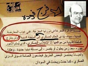 - ^ مرت ذكراه فلم يهتم بها أحدد. فرج فودة جاهر بما كان يهمس به المثقفون سرا من عورات دولة الخلافة الإسلامية - جريدة القاهرة - تاريخ الوصول 16 سبتمبر-2008