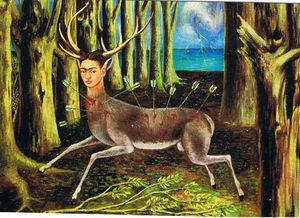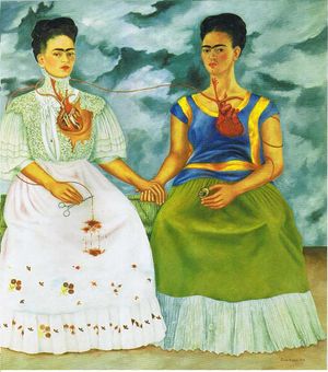 ![]() پورتريه شخصي لفريدا كالو، بعقد من الأشواك وطائر طنان, عام 1940.[1] | |