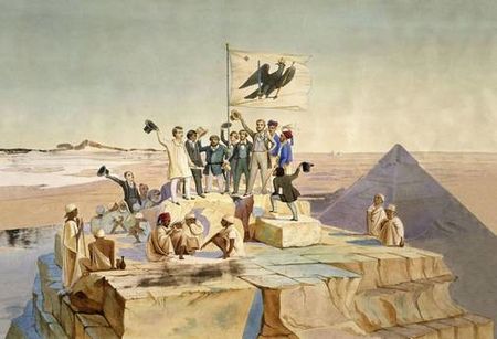 بعثة كارل ريتشارد لپسيوس تحتفل بعيد ميلاد الملك فريدرش ڤلهلم الرابع على قمة الهرم الأكبر في 15 أكتوبر 1842.