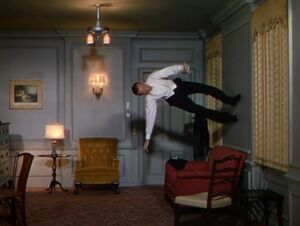 Frequently, a dance sequence was built around two or three key ideas, sometimes inspired by his steps or by the music itself, suggesting a particular mood or action.[21] Caron said that while Kelly danced close to the ground, she felt like she was floating with Astaire.[49] Many dance routines were built around a "gimmick", like dancing on the walls in Royal Wedding or dancing with his shadows in Swing Time. He or his collaborator would think of these routines earlier and save them for the right situation. They would spend weeks creating all the dance sequences in a secluded rehearsal space before filming would begin. They would work with a rehearsal pianist (often the composer Hal Borne) who in turn would communicate modifications to the musical orchestrators.