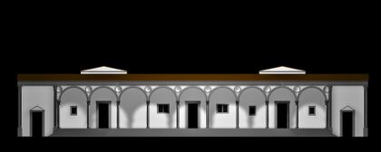 Brunelleschi's first architectural commission was the Ospedale degli Innocenti (1419–c. 1445), or Foundling Hospital, designed as a home for orphans. The Guild of the Silk Merchants' Guild owned, funded and managed the hospital.[13] As with many of Brunelleschi's architectural projects, the building was completed after a significant time lapse and with considerable modifications by other architects. He was the official architect until 1427, but he was rarely on site after 1423. The hospital was completed by the Florentine architect Francesco della Luna in 1445.[14][15]