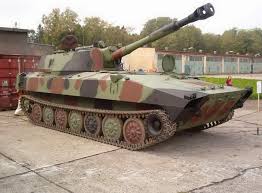 2S1 گڤوزديكا 2S1 Gvozdika هو مدفع روسي دخل الخدمة عام 1971، يمتاز بأنه يستخدم في عمليات الانزال البحري وبقدرته على اجتياز العوائق المائية. يستخدم المدفع لضرب التحصينات والدشم العسكرية والمدرعات ومرابض المدفعية المعادية ومراكز القيادة والسيطرة للعدو. يزود بمدفع هاوتزر عيار 122 مم D-30) 2A18) كتسليح رئيسي ويتميز بقدرته على اطلاق قذائف تقليدية حتى مدى 25 كم وقذائف دفع صاروخي بمدى أقصى حتى 42 كم ويطلق النار بمعدل 10 قذائف في الدقيقة. أما بالنسبة لتسليحه الثانوي فهو رشاش دوشكا عيار 12.7 ملم و رشاش عيار 7.62 ملم.