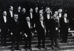 In 1916, while at university, Fumimaro took his father's seat in the House of Peers, upper house of the Imperial Diet.[18] After his return from Europe he was aggressively recruited by the most powerful political faction of Japan's budding Taishō democracy of the 1920s: the kenkyukai, a conservative, militaristic faction, led by Yamagata Aritomo and generally opposed to democratic reform.[19] In September 1922, he joined them.[20]