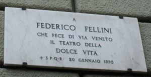 To Federico Fellini, who made Via Veneto the stage for the "Sweet Life" - SPQR - January 20, 1995