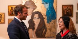 بعد زيارة الرئيس الفرنسي إمانوٍل ماكرون فيروز، ونشر الصورة التي تجمعهما، كان الملفت للنظر في غرفة جلوس فيروز، تلك اللوحة والأيقونات على الجدار. اللوحة الكبيرة في الوسط، من أشهر الأعمال التشكيلية اللبنانية، وهي عمل للفنانة اللبنانية - الكرواتية سيسي توماسيو سرسق (1923-2015) وأنجزت عام 1980. على جانبي العمل الفني، تتوزع عدّة أيقونات بيزنطية، كتلك التي تعلّق في معظم البيوت الأرثوذوكسية. بعكس التقاليد اللاتينية لرسم المسيح والقديسين، تتبع الأيقونة البيزنطية الشرقية نمطاً محدّداً في التصوير، ذا معانٍ لاهوتية.[11]