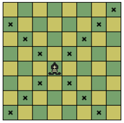 يتحرك الفيل على الرقعة بشكل قطري في كافة الاتجاهات ولا يمكنه القفز فوق القطع الأخرى. ويأسر القطع المعادية بالحلول محلها. ويميز الفيل عادة بالجهة التي يلعي فيها من الرقعة فنتيجة لموقعه يشار إليه عادة باسم فيل الملك أو فيل الوزير. زمع أن الفيل من القطع القوية إلا أنه يعتير أضعف من القلعة حيث أن الفيل يمكنه الوصول إلى 32 مربع في الرقعة بينما القلعة يمكنها الوصول إلى 64 مربع في الرقعة. وفي حين أن الفيل يمكنه أن يهدد 7 إلى 13 مربعا على رقعة فارغة (اعتمادا علو موقعه على الرقعة) فإن القلعة يمكنها تهديد 14 مربع. وعادة فإن قيمة القلعة تساوي قيمة الفيل زائد قيمة جنديين.