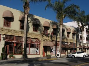 The large Ventura Oil Field was first drilled in 1919 and at its peak produced 90،000 براميل في اليوم (14،000 m3/d).[31][32] The development of the oil fields in the 1920s, along with the building of better roads to Los Angeles and the affordability of automobiles, enabled a major real estate boom. Symphony concerts and Little League teams were sponsored by the oil companies.[33] Contemporary downtown Ventura is defined by extant buildings from this period.[34][35] Landmarks built during the oil boom include Ventura Theatre (1928), the First Baptist Church of Ventura (1926), the Ventura Hotel (1926), and the Mission Theatre (1928).[36][34]