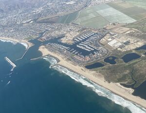 Ventura Pier was built in 1872 at a cost of $45,000 and was the longest wooden pier in California. By 1917, it had been rebuilt to a length of 1،700 أقدام (520 m). Much of the pier was destroyed by a storm in 1995, but it was subsequently rebuilt.[26][27][28][29]
