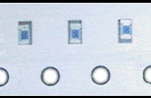 Surface Mount Fuses on 8 mm tape. Each fuse measures 1.6 mm x 0.79 mm and has no markings.