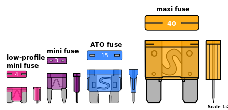 الفاصمات النصلية تأتي في أربع مقاسات: low-profile mini, mini, regular and maxi