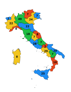 إميليا-رومانيا 22  پيدمونت 22 Overseas constituencies 6