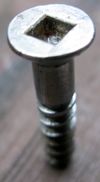 A thumbscrew is a type of screw drive with either a tall head and ridged or knurled sides, or a flat, vertical head. They are intended to be tightened and loosened by hand. They are often cut for Phillips head or slotted screwdrivers as well.