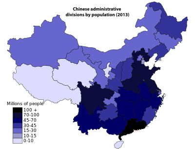 هذه هي قائمة للتقسيمات الادارية في الصين مرتبة حسب إجمالي تعداد المقيمين فيها. It includes all provinces, autonomous regions, direct-controlled municipalities and special administrative regions.
