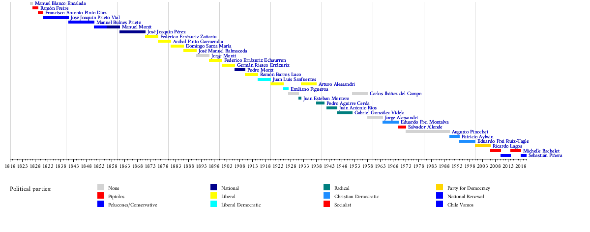 18 February 1830 | 1 April 1830 | style="background-color:قالب:Pelucones/meta/color"| | Pelucones | — | Provisional President. Resigned. | José Tomás Ovalle y Bezanilla | |