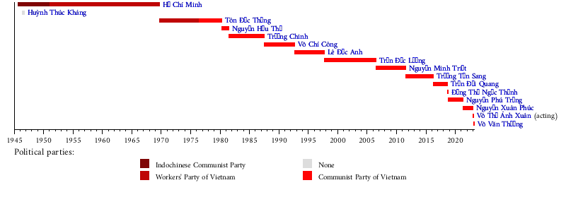 2 September 1945 | 2 September 1969† | 24 years | Indochinese Communist Party (until February 1951) Worker's Party of Vietnam (from February 1951) |