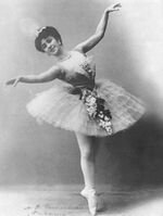 Agrippina Yakovlevna Vaganova was a Russian ballet teacher who developed the Vaganova method – the technique which derived from the teaching methods of the old Imperial Ballet School (today the Vaganova Academy of Russian Ballet) under the Premier Maître de Ballet Marius Petipa throughout the mid to late 19th century, though mostly throughout the 1880s and 1890s. It was Vaganova who perfected and cultivated this form of teaching the art of classical ballet into a workable syllabus. Her Fundamentals of the Classical Dance (1934) remains a standard textbook for the instruction of ballet technique. Her technique is one of the most popular techniques today. Among Vaganova's dance alumnae were the distinguished Soviet ballerinas Marina Semenova, Olga Jordan, Galina Ulanova, Tatiana Vecheslova, Feya Balabina, Natalia Dudinskaya, Alla Shelest, Nonna Yastrebova, Olga Moiseeva, Ludmilla Safronova, Ninel Kurgapkina, Alla Osipenko and Irina Kolpakova. Shortly after her death, on 1 November 1957, the Choreographic College on Rossi street was renamed in her honor; in 1961, it received the title of "academic" and in 1991 it began to use the name Agrippina Vaganova Academy of Russian Ballet. | Agrippina Vaganova in "La Esmeralda". St. Petersburg, circa 1910. | |