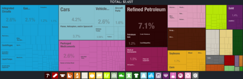 البيانات هي لسنة 2016، بالمليون دولار أمريكي، كما أفادت مرصد التعقد الاقتصادي. حالياً أعلى ثلاثين صادر مذكورين أدناه.