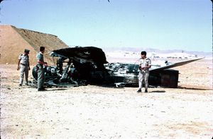 Another 109 Squadron formation arrived at Bir Gifgafa at 09:55, while four 105 Squadron Super Mysteres attacked the field in the afternoon, although by then Bir Gifgafa had been completely disabled and there was little damage to be done.[6] The Egyptian air force had lost as many as 20 MiG-21s, at least four Mi-6s and a MiG-15UTI.[4][7]