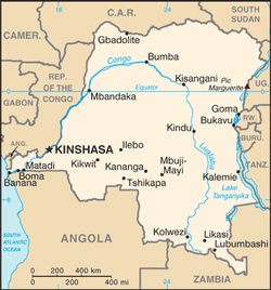 {{Location map many | Democratic Republic of the Congo | relief = yes | width = 250 | caption = Democratic Republic of the Congo | lat1_deg = -4.33 | lon1_deg = 15.32 | label1 = Kinshasa | lat2_deg = -11.67 | lon2_deg = 27.47 | label2 = Lubumbashi | lat3_deg = 4.28 | lon3_deg = 21.02 | label3 = Gbadolite }}