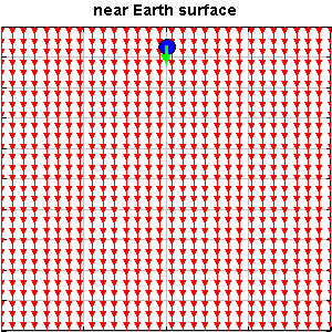 Gravity in a room: the curvature of the Earth is negligible at this scale, and the force lines can be approximated as being parallel and pointing straight down to the center of the Earth