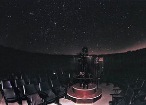 القبة الفلكية ( planetarium ) هي theatre built primarily for presenting educational and entertaining shows about astronomy and the night sky, or for training in celestial navigation.[1][2][3]