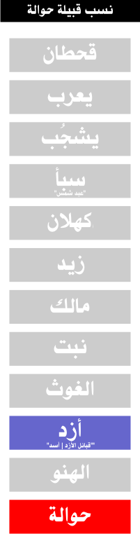 - حوالة من الأزد من سكان السراة ، من حوالة ابن الهنو بن الأزد ، ومن اخوة حوالة الحجر و يزيد ودهنة و يرفي .[5]