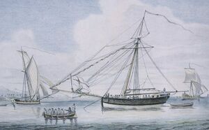 When the Americans captured the Bermudian privateer Regulator, they discovered that virtually all of her crew were black slaves. Authorities in Boston offered these men their freedom, but all 70 elected to be treated as prisoners of war. Sent as such to New York on the sloop Duxbury, they seized the vessel and sailed it back to Bermuda.[38] One-hundred and thirty prizes were brought to Bermuda in the year between 4th day of April 1782 and the 4th day of April 1783 alone, including three by Royal Naval vessels and the remainder by privateers.[39]