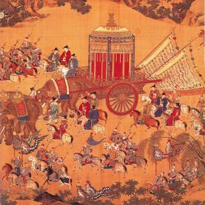 Detail of The Emperor's Approach showing the Xuande Emperor's royal carriage. Ming Dynasty of China.